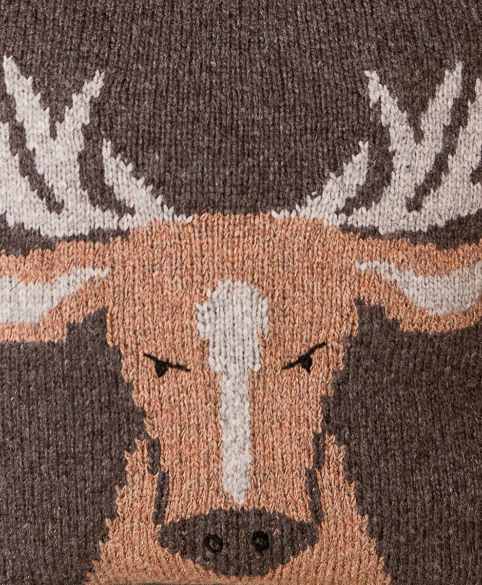 Ob mit Feste-Maschen-Rand und Pompon- Schwänzchen oder romantischer Borte: Einfach wunderschön, was dabei rauskommt, wenn sich Hirsch und Hase „gute Nacht“ sagen! (ca. 50 x 50 cm, für Kissenfüllung 50 x 50 cm.)