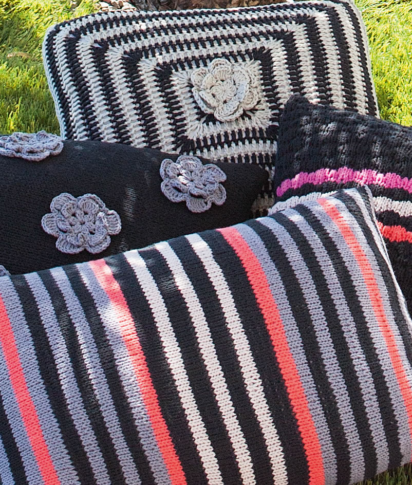 Hier nimmt Farbe grafischen Mustern die Strenge. Schwarz und Grau hingegen machen Romantisches modern. (ca. 42 x 42 cm)
