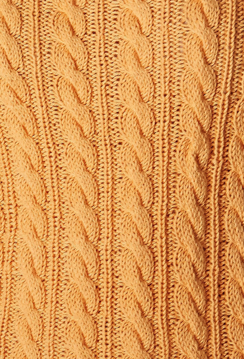 Lana Grossa Elastico (96% Baumwolle, 4% Polyester, Lauflänge 160 m/50 g), 550 (650 – 750) g Apricot (Fb 126); Stricknadeln Nr. 4 und 1 Rundstricknadel Nr. 4, 40 cm lang.