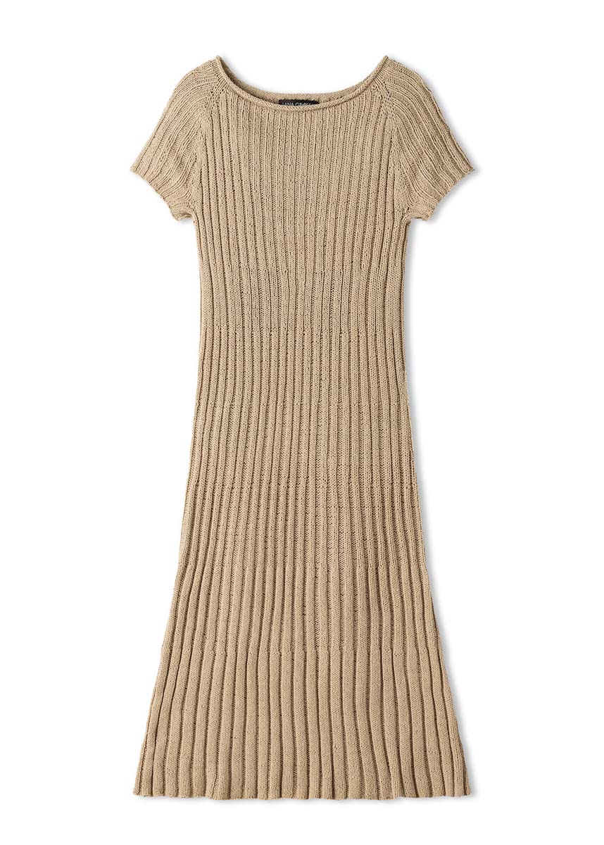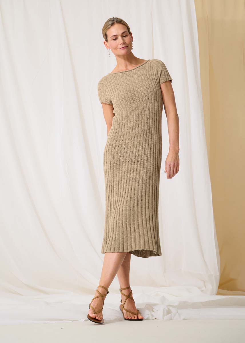 Top Down gestricktes Midi-Kleid im Rippenmuster und mit subtil abgesetztem Saum.