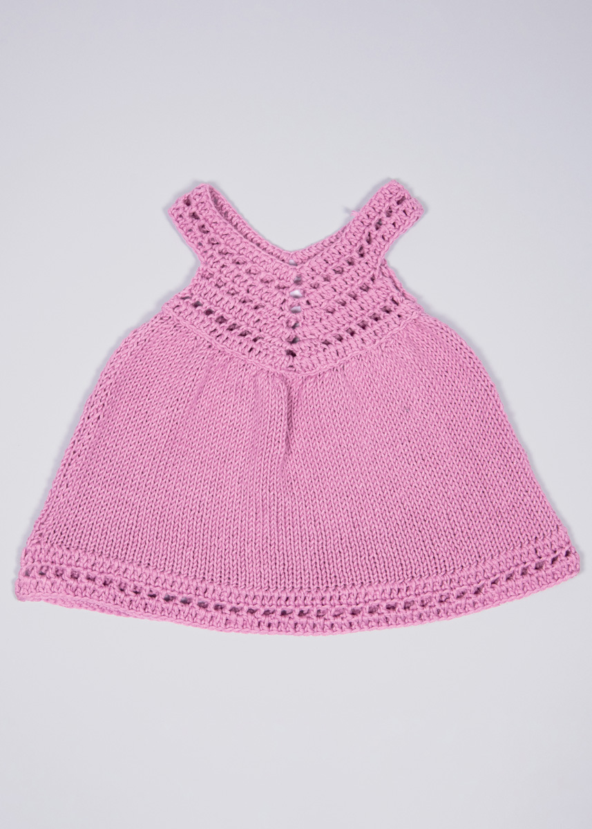 Lana Grossa Soft Cotton (70 % Baumwolle, 30 % Microfaser, Lauflänge 140 m/50 g) 150 (200/200/250) g Flieder (Fb 22); Stricknadeln Nr. 4,5, Häkelnadel Nr. 4,5.