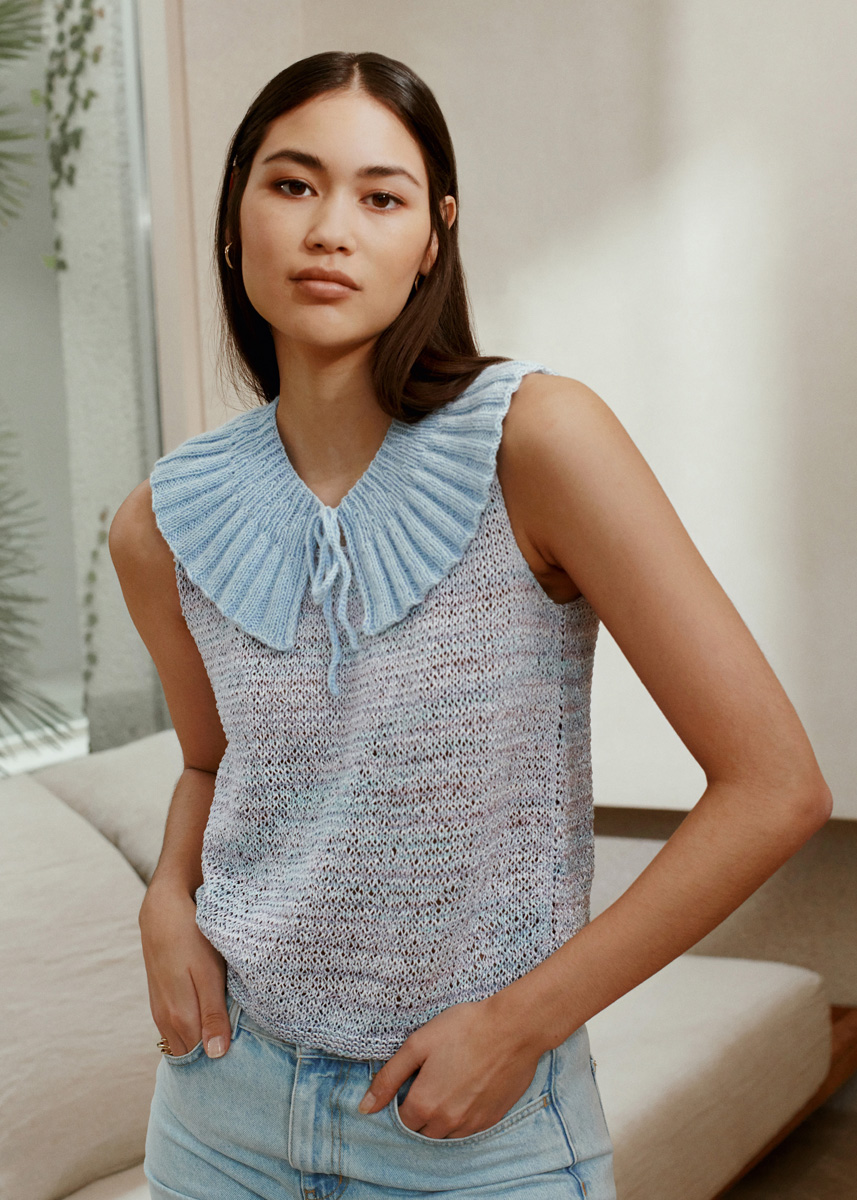 Angesagte XL-Kragen verpassen coolen Looks ein feminines Finish. Hier die gestrickte Variante, bei der die Form durch simple, unterschiedlich breite Rippen entsteht.