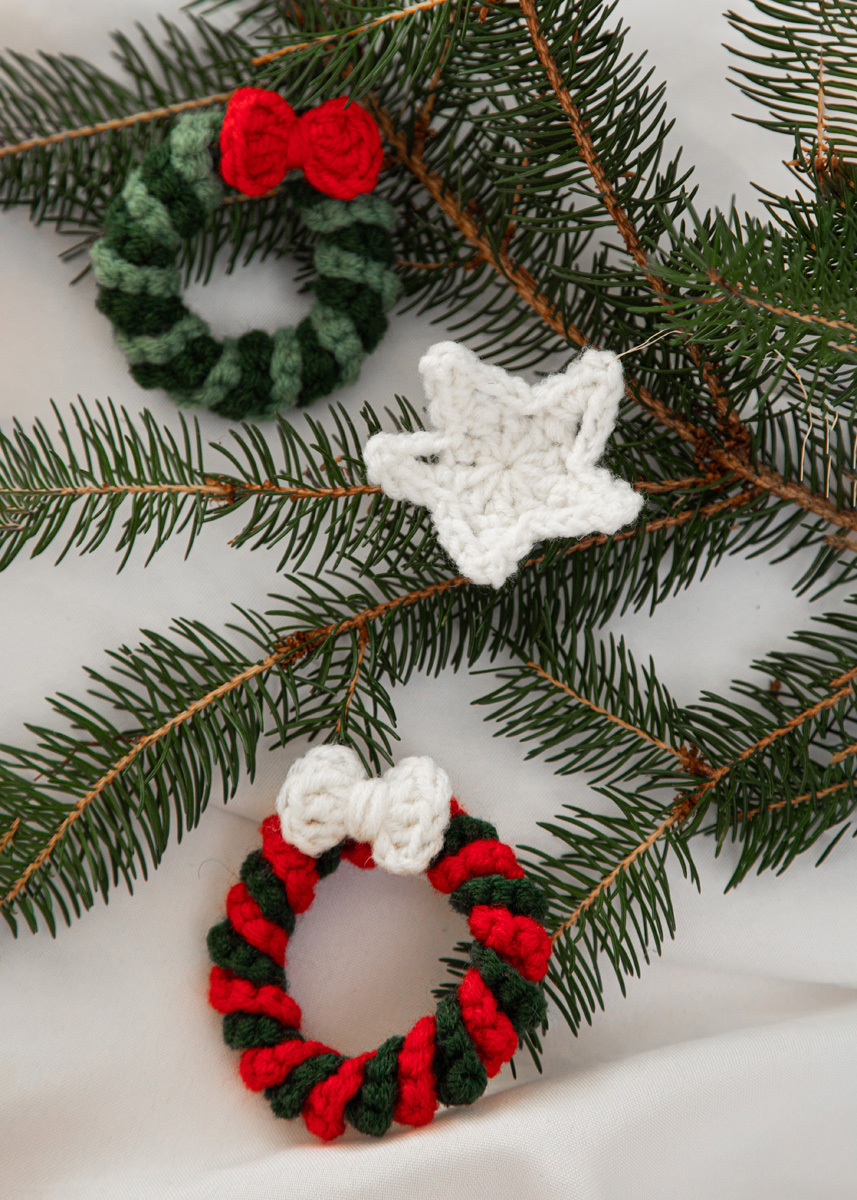• je 50 g Dunkelgrün (Fb 17), Rot (Fb 12) und Weiß (Fb 1) ODER