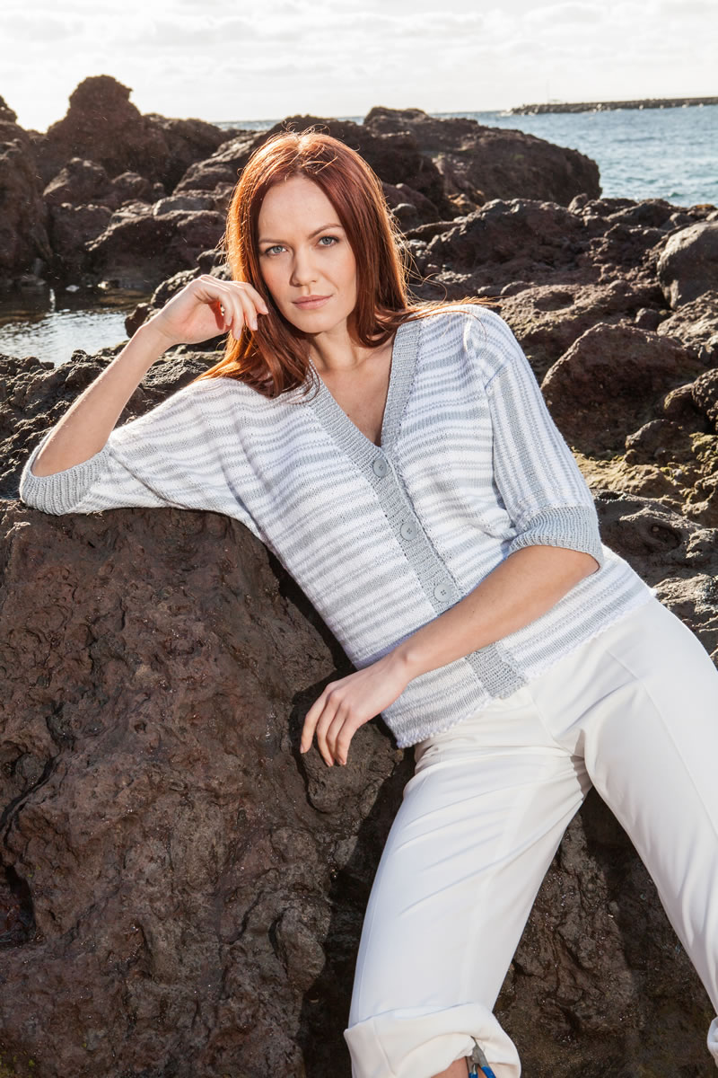 Kurzärmelige Jacke im zarten Streifenmuster aus der Garnneuheit 365 Cotone.