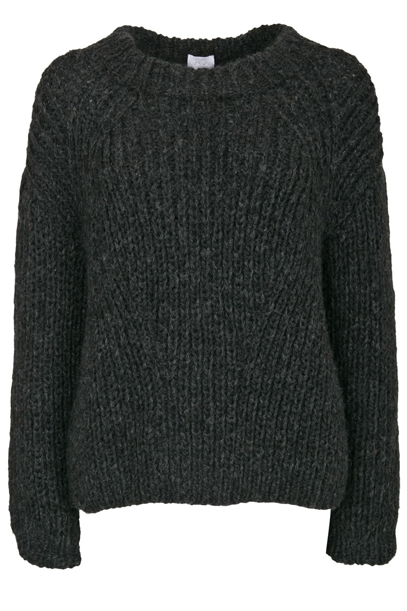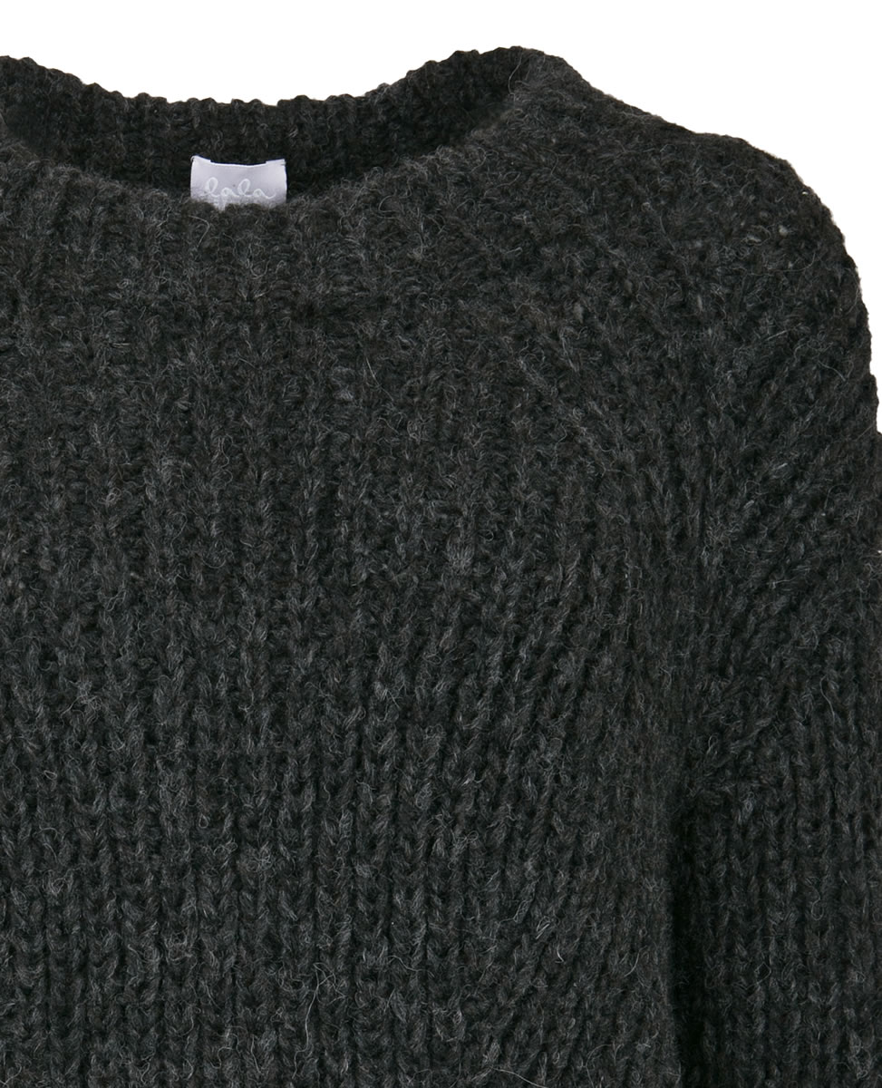Lana Grossa Qualität „Yak merino“ (30 % Schurwolle, 28 % Alpaka, 22 % Polyamid, 20 % Yak, Lauflänge 110 m/50 g): ca. 450 (500/550) g Anthrazit meliert (fb 12), Stricknadeln Nr. 5 und 6, eine 40 cm lange Rundstricknadel Nr. 5.