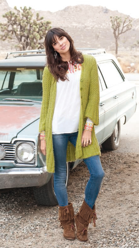 ein Must-Have: der Strickmantel in Guter-Laune-Farbe mit Trompetenärmeln