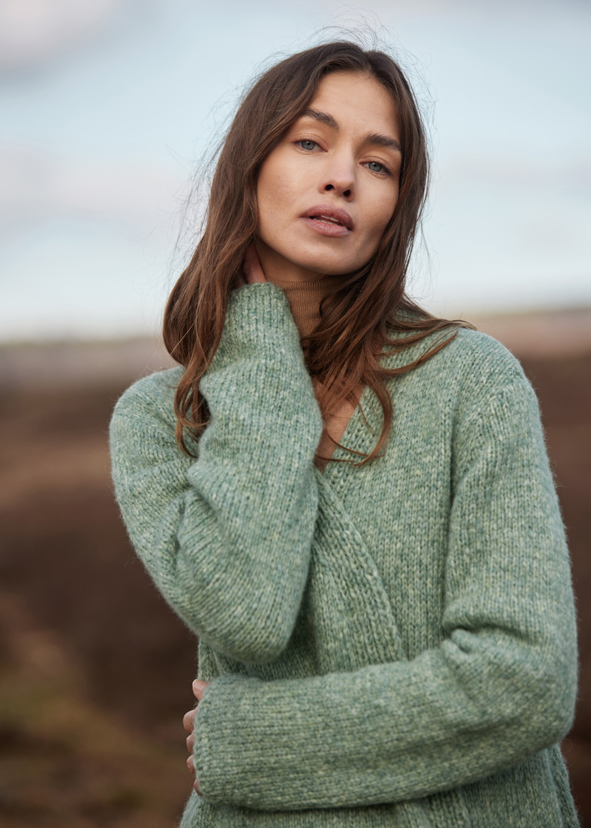 Lana Grossa-Qualität „Spuma“ (80 % Schurwolle (Merino superfine), 20 % Polyamid, LL = ca 110 m/50 g): ca 650 (650 - 700 - 750) g Graugrün (Fb 11); Stricknadeln Nr 4,5, Nr 5,5 und Nr 6.