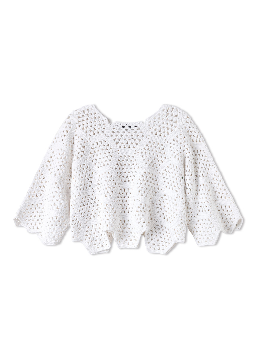Lana Grossa-Qualität „Promessa“ (70 % Baumwolle (Bio), 30 % Polyamid (Recycled), LL = ca 125 m/50 g): 550 (700) g Weiß (Fb 13); Häkelnadel Nr 4.
