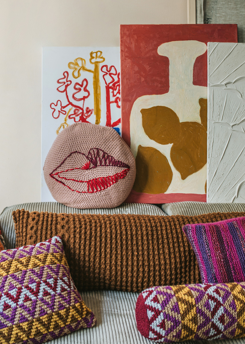 Lana Grossa-Qualität „Alta Moda Cashmere 16“ (78 % Schurwolle (Merino), 12 % Kaschmir, 10 % Polyamid, LL = ca 110 m/50 g): ca 800 g Braun (Fb 42); Stricknadeln Nr 7; 1 Zopfnadel; 1 waschbares Kissen- Inlay 40 x 140 cm.