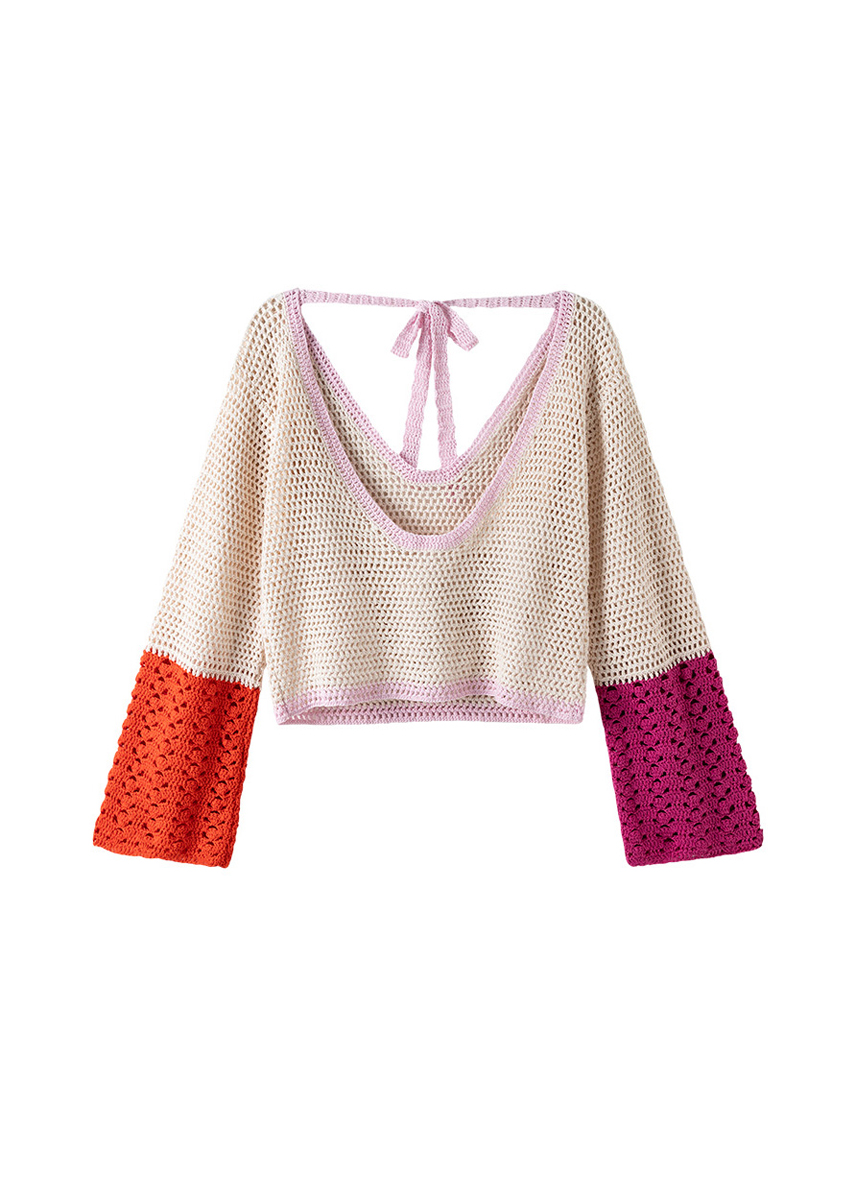 Lockerers Longsleeve im Mustermix mit Color-Blocking-Details und Rückenausschnitt .