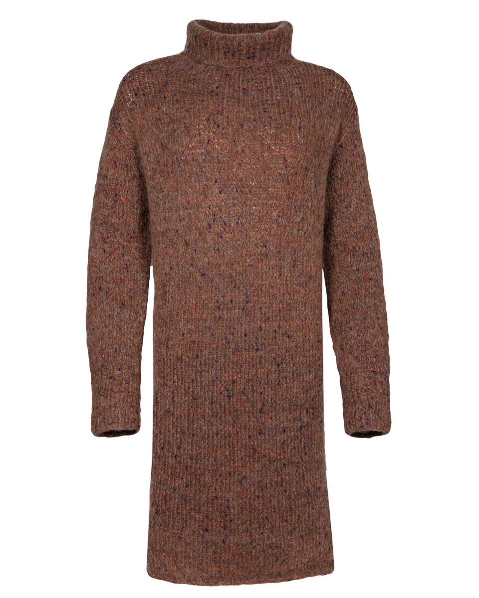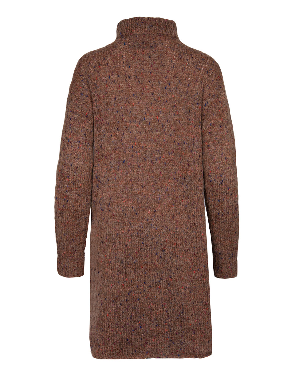 Lana Grossa Lala Berlin Fluffy (42 % Schurwolle, 21 % Polyamid, 19 % Alpaka, 18 % Mohair, Lauflänge 130 m / 50 g) 450 (450 – 500) g Braun meliert (Fb 110); Stricknadeln Nr. 4 und 6, eine 40 cm lange Rundstricknadel Nr. 4.