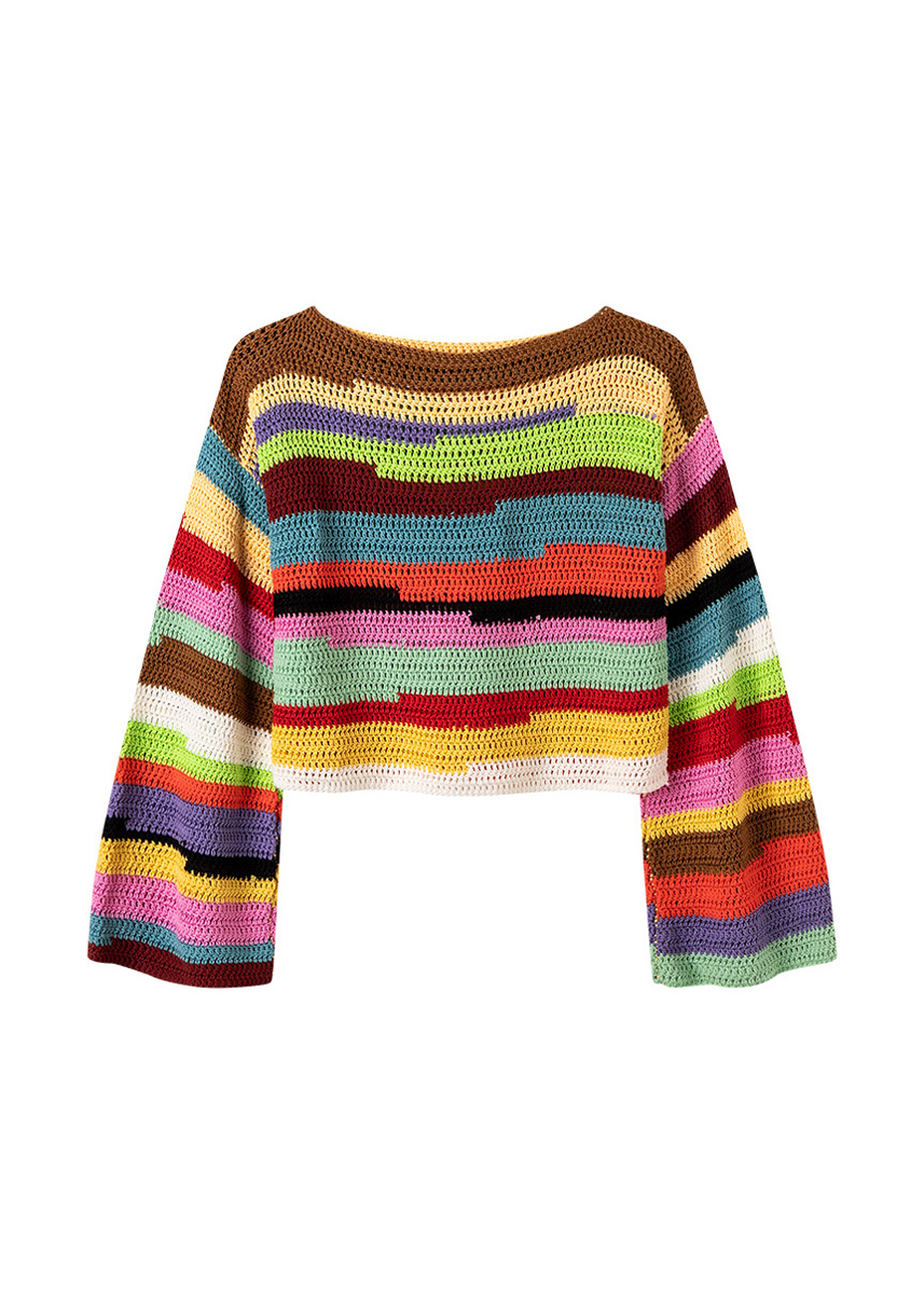 Lana Grossa-Qualität „Cotone” (100 % Baumwolle (gekämmt, gasiert, mercerisiert), LL = ca. 125 m/50 g): ca. 100 g Nelke (Fb. 2) und je ca. 50 g Butterblumengelb (Fb. 129), Hellpetrol (Fb. 43), Hellgrün (Fb. 36), Lila (Fb. 124), Braun (Fb. 37), Narzissengelb (Fb. 94), Schwarz (Fb. 21), Feuerrot (Fb. 120) und Lana Grossa-Qualität „Elastico” (96 % Baumwolle, 4 % Polyester (Elité), LL = ca. 160 m/50 g): je ca. 50 g Hummer (Fb. 186), Orientrot (Fb. 168), Ecru (Fb. 36) und Hellgrün (Fb. 159); 1 Wollhäkelnadel Nr. 4.