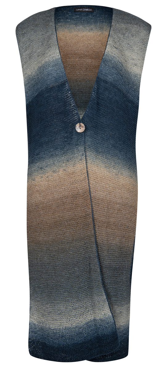 Edle Farbverläufe und eine schlichte, hoch geschlitzte Form mit tiefem V-Neck machen diese Weste zum effektvollen Anfängermodell.