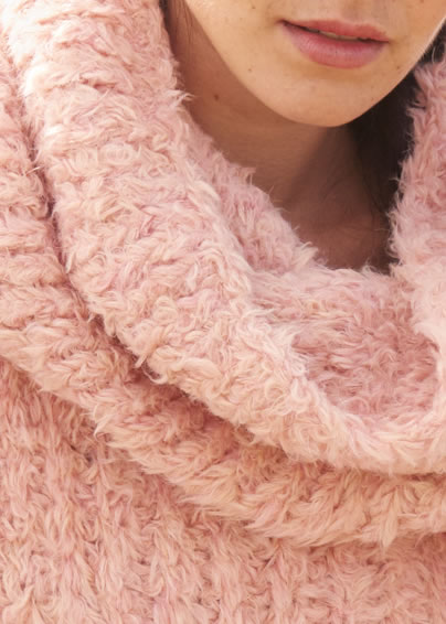 Dieser roséfarbene Pullover setzt auf einen edlen Mix aus Flauschgarn und zartem Metallic-Glanz. Er wird einfach im Halbpatent gestrickt, glatt rechts der überdimensionale Loop, der sich weich fallend um den Hals schmiegt.