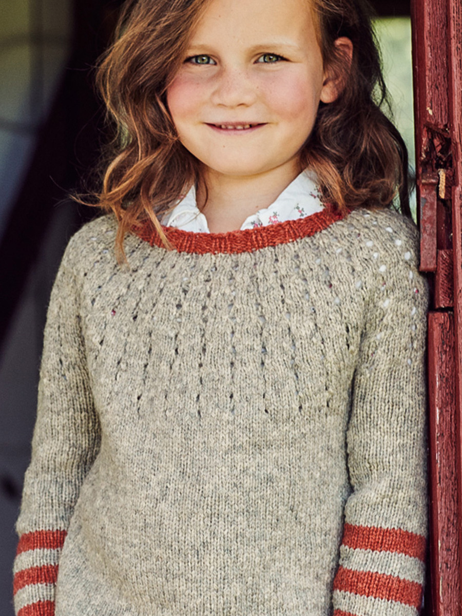 Lana Grossa-Qualität „Landlust Merino 180“ [100% Schurwolle (Merino superwash). LL = ca. 180 m/50 g]; ca. 200 (200 - 250) g Leinen (Fb 228); 50 g Lachs (Fb 231); Rundstricknadeln Nr. 5, 60 lang und ein Nadelspiel Nr. 5; für Bund und Blenden Rundstricknadeln Nr. 4,5, 60 lang und ein Nadelspiel Nr. 4,5.