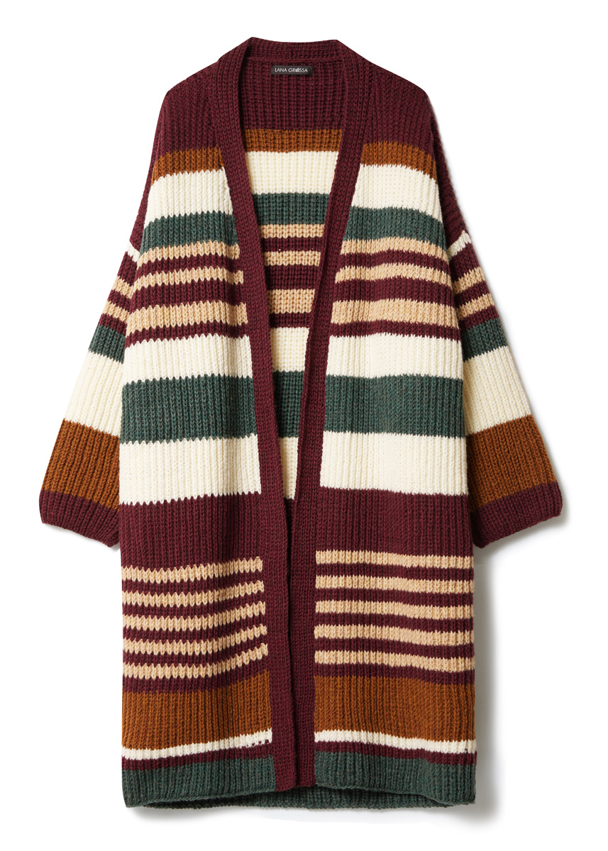 Einer für immer: Der gestreifte Patentmuster- Mantel punktet mit einer schlichten Form und zeitlosen Farben. Sein Kettengarn aus Merinowolle und einem Hauch Polyamid ist ultraweich, leicht und langlebig.