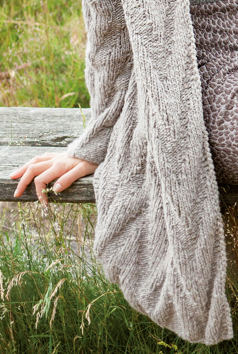 Gestatten: „Merino Air“, unser brandneues, federleichtes Garn. Hier wärmt es als schlichter, duftiger Zackenmuster-Mantel, der Lady-Looks die Strenge nimmt und auch mit Jeans sehr gut kann.