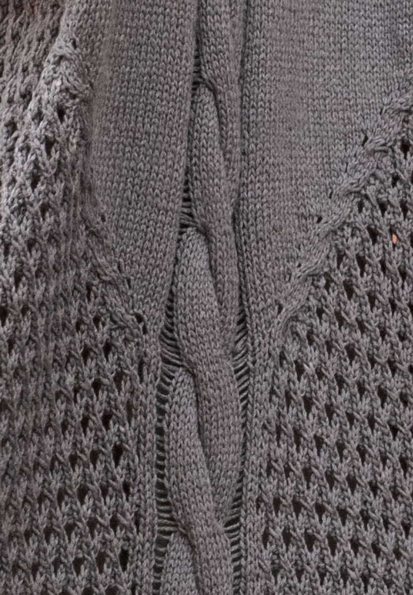 Lana Grossa-Qualität „365 Cashmere” (77 % Baumwolle, 15 % Kaschmir, 8 % Polyamid, LL = ca. 175 m/50 g): ca. 700 (750) g Dunkelgrau (Fb. 44); Stricknadeln Nr. 3,5 und 4, 1 Wollhäkelnadel Nr. 4.