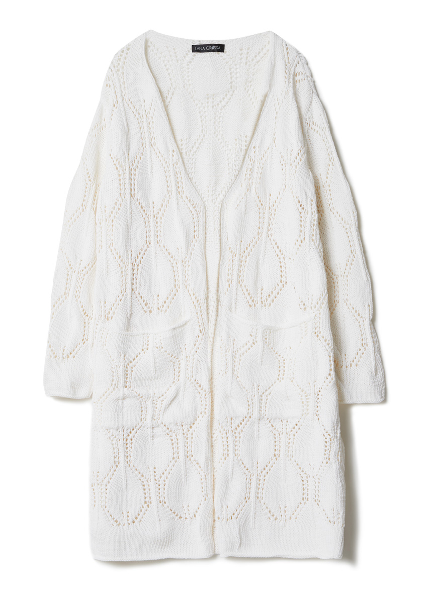 Lana Grossa „Promessa“ (70% (Bio) Baumwolle, 30% Rec. Polyamid, LL = 125 m/50 g): 700 g in Weiß (Fb. 13); Stricknd Nr 5.