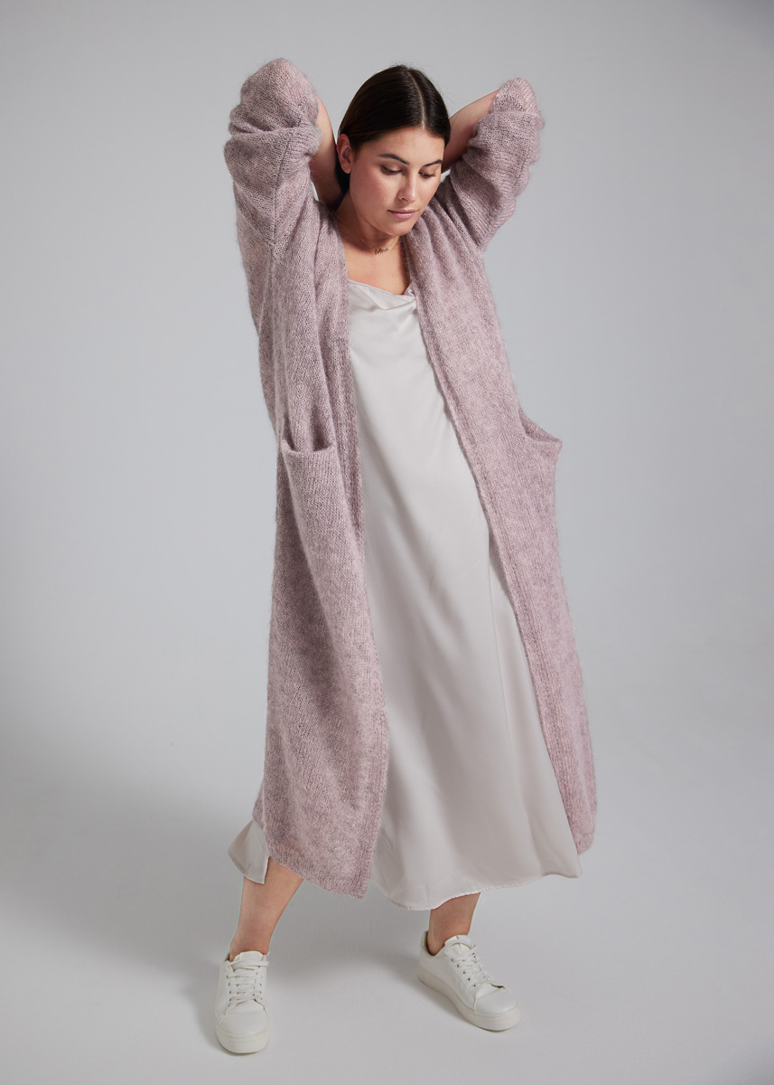 Ob eleganter Mantel oder kuschliger Morgenrock: Im federleichten Traumteil mit Seitenschlitzen und eingestrickten Taschen sind Sie rund um die Uhr tipptopp gestylt.