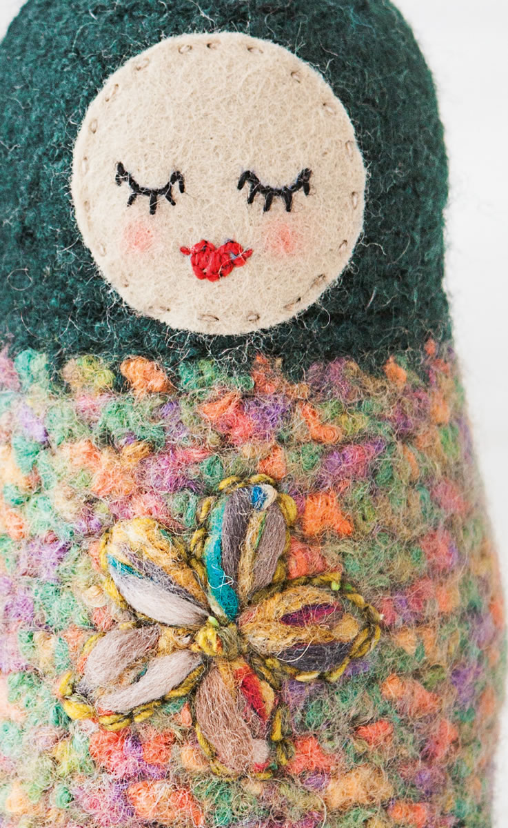 Die zuckersüßen Russenpüppchen bringen Glück, darum hier gleich zwei davon. Wie man sie macht? Häkeln, filzen, ausstopfen – und zum Schluss hübsch bunt besticken.(Gewaschen ca. 20cm hoch.)