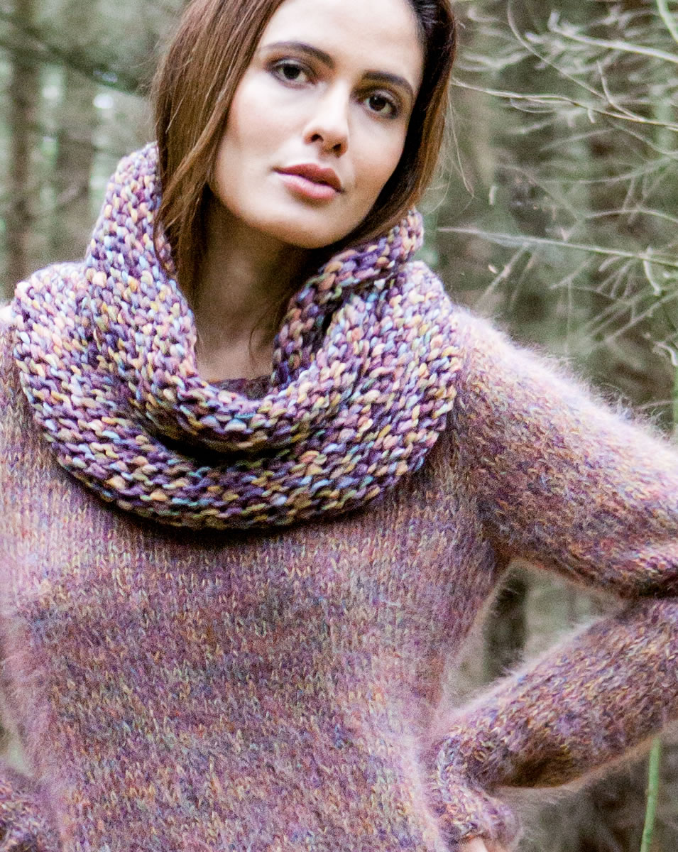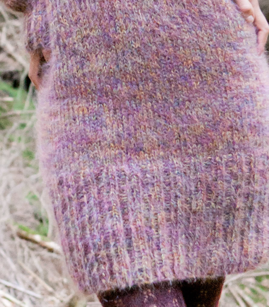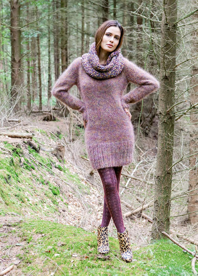 Vier Töne seidiges Mohair-Garn ergeben dieses Minikleid, das mit Leggings oder Skinny-Jeans auch als Long-Pulli durchgeht.