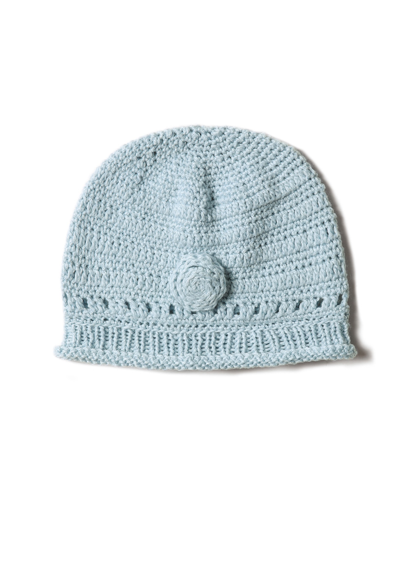 Lana Grossa Alta Moda Cotolana (45 % Schurwolle (Merino), 45 % Baumwolle (Pima), 20 % Polyamid, Lauflänge = 150 m/50 g): 50 g Eisblau (Fb 11); Häkelnadel Nr. 3,5; Nadelspiel Nr. 4.