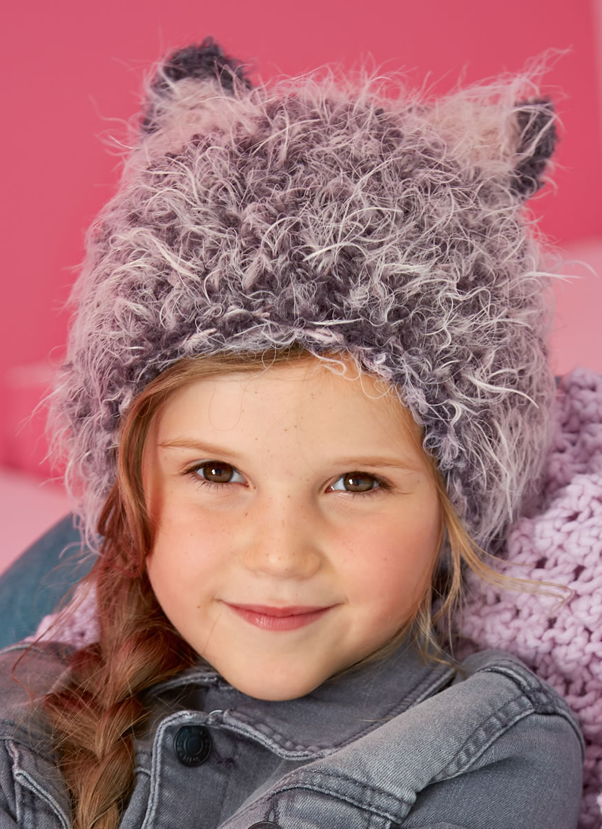 Lana Grossa Qualität „Bombolo” (30 % Super Kid Mohair, 20% Schurwolle Merino, 40% Polyacryl, 10% Polyamid, LL = 65 m/50 g), ca. 50 g Dunkelgrau (Fb 12), Lana Grossa Qualität „Peppina“ (60% Polyamid, 25 % Schurwolle Merino, 15% Polyacryl, LL = 85 m/50 g), ca. 50 g Rosa (Fb 4), 1 Spiel Stricknadeln Nr. 8 und 1 Häkelnadel Nr. 7.