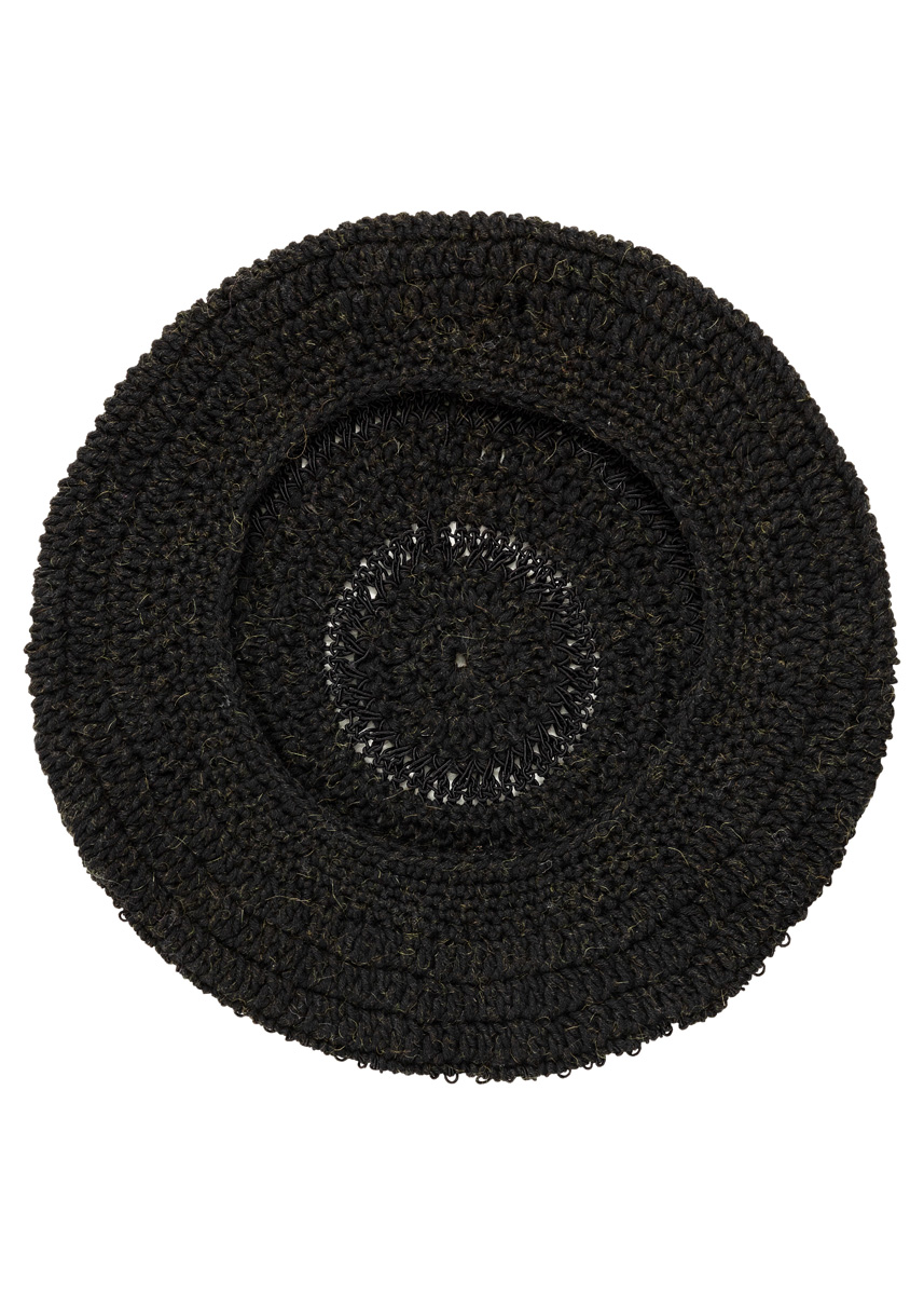 Lana Grossa Brigitte No. 4 (80% Baumwolle, 20% Alpaka (Baby), Lauflänge 110 m/50 g), 50 g Schwarz (Fb 26) und Lana Grossa Capri (55% Baumwolle, 30% Polyamid, 15% Seide, Lauflänge 150 m/50 g), 50 g Schwarz (Fb 16); 1 Häkelnadel Nr. 3,5 und 4.