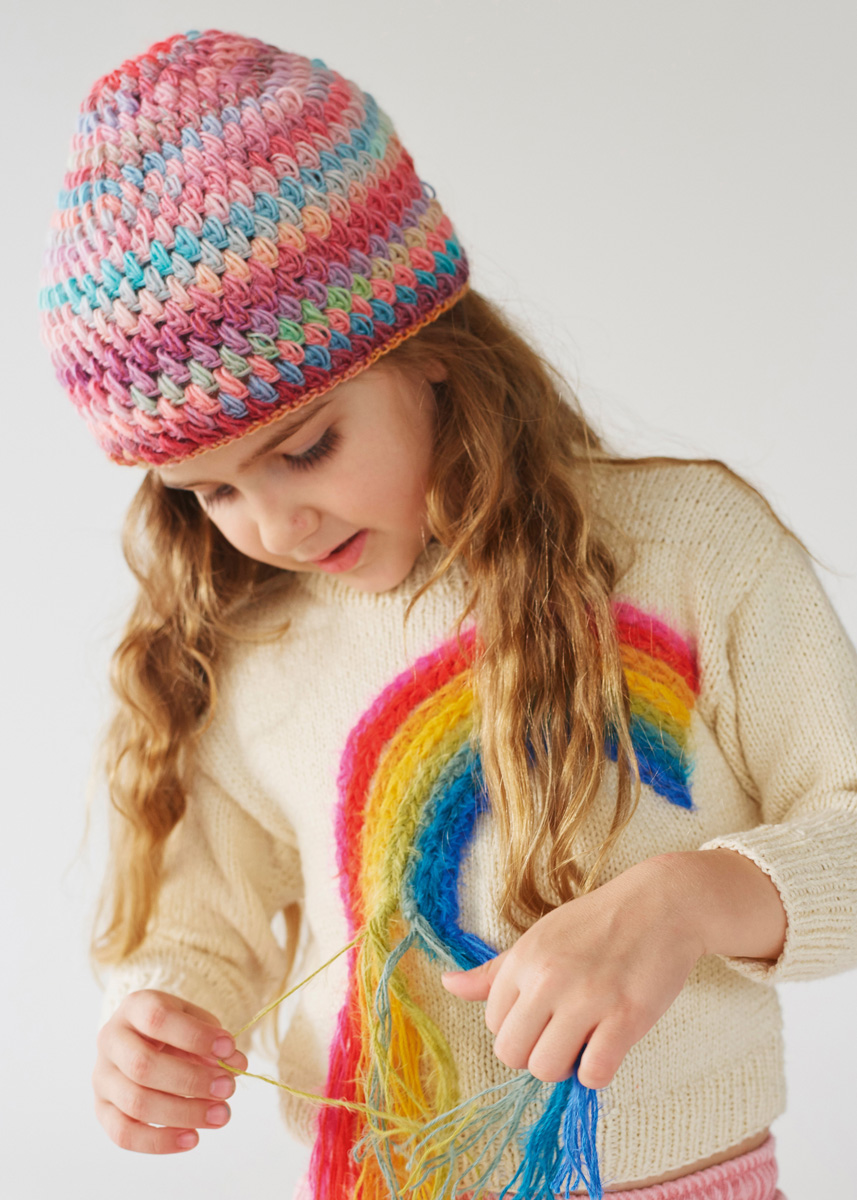 Lana Grossa Colorissimo (100% Schurwolle (Merino extrafein), Lauflänge 300 m/100 g), 100 g Lachs/ Koralle/Orangegelb/Gelb/Türkis/Flieder/Rosa (Fb 11); 1 Häkelnadel Nr. 4.