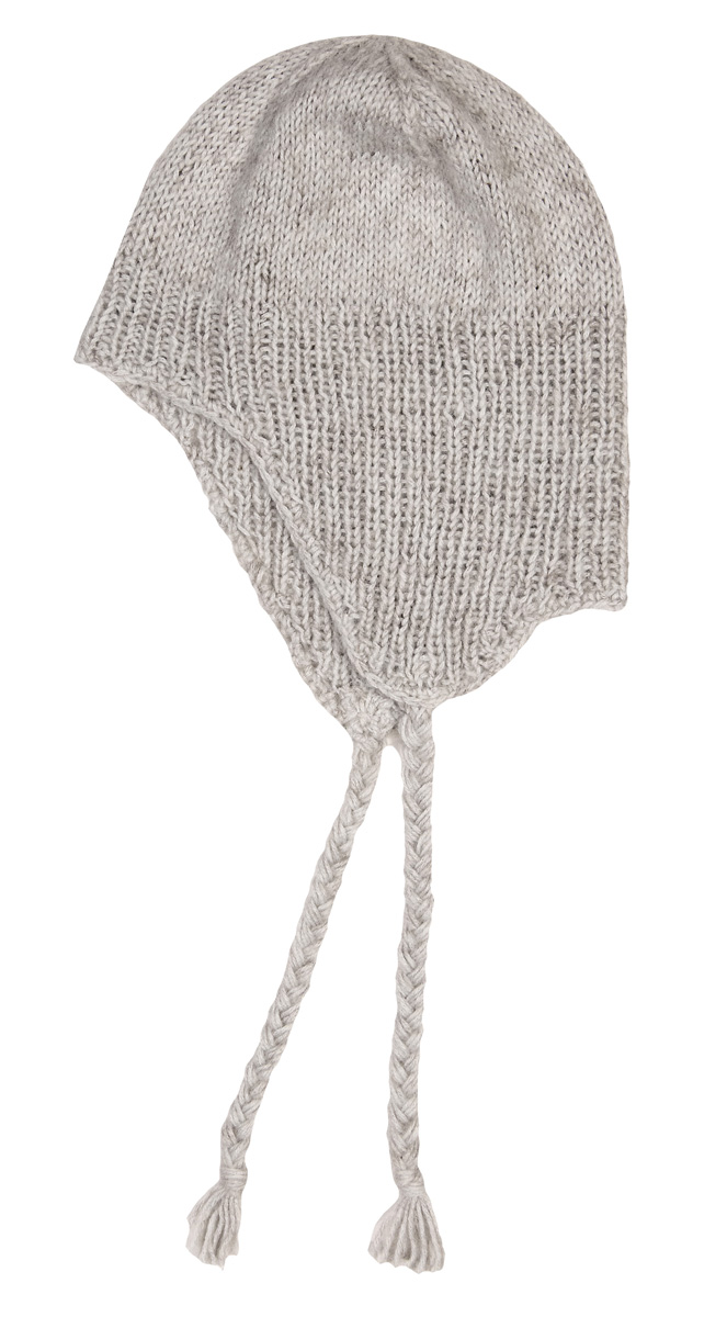 Lana Grossa Ecopuno (72 % Baumwolle, 17 % Schurwolle, 11 % Alpaka, Lauflänge 215 m/50 g) 50 g Grège (Fb 18); Nadelspiel Nr. 3, Häkelnadel Nr. 2,5.