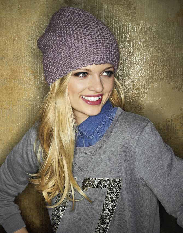 Lana Grossa-Qualität „Everybody Unito“ (80 % Schurwolle, 20 % Polyamid, Lauflänge ca. 75 m/50 g): ca. 100 g Natur Fb. 107 oder pudriges Flieder Fb. 104 oder Taupe Fb. 103 oder Dunkelgrau Fb. 105 oder Pink Fb. 108 oder Hummer Fb. 109 oder Grüngelb Fb. 111 oder Türkis Fb. 112; Stricknadeln Nr. 7.