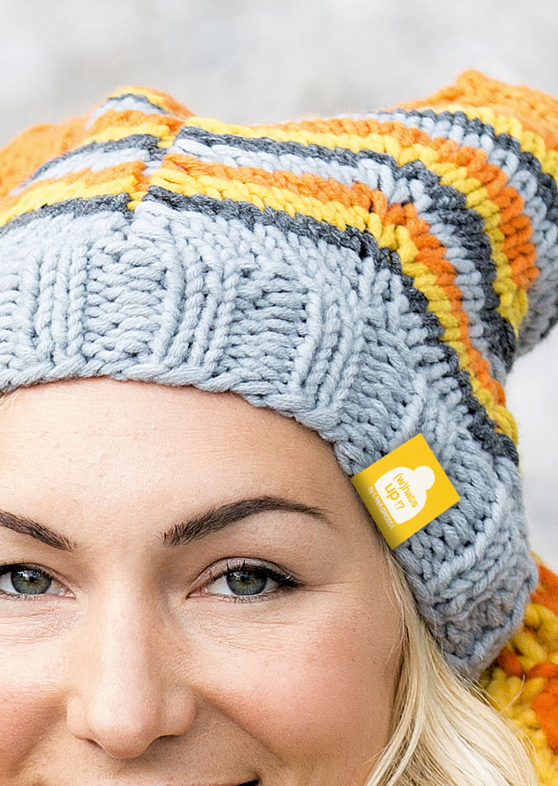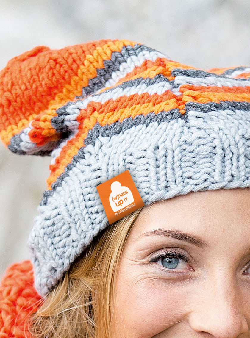 Lana Grossa Qualität „Mille II“ (50 % Schurwolle, 50 % Polyacryl, Laufl änge 55 m/50g): für Mütze A: je ca. 50 g Dunkelgrau meliert (Fb 16), Hellgrau (Fb 43), Orange (Fb 51) und Hummer (Fb 63), für Mütze B: je ca. 50 g Dunkelgrau meliert (Fb 16), Hellgrau (Fb 43), Curry (Fb 46) und Orange (Fb 51); Spielstricknadeln Nr. 6 und 7.