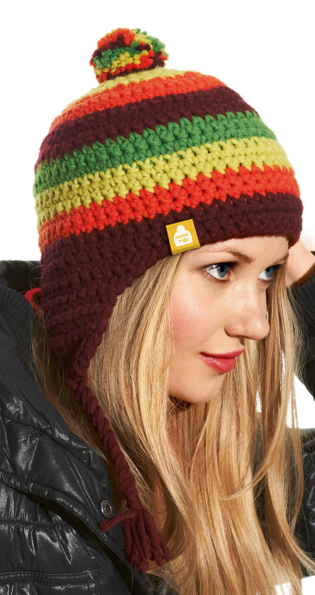 Rasta Mania! Earflap-Mütze, Raggae-Rap im Ohr - damit nimmst du ganz locker jedes Hindernis. (Kopfumfang 54 – 56 cm, ca. 18,5 cm hoch ohne Ohrenklappen)