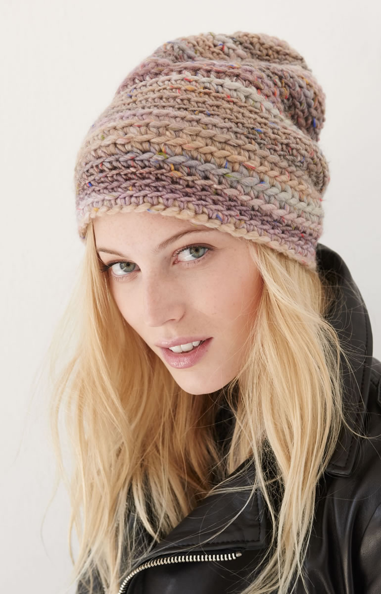 Lana Grossa Olympia Tweed (47 % Schurwolle, 47 % Polyacryl, 6 % Viskose, Lauflänge 100 m/100 g) 100 g Beige/Flieder/Grau meliert (Fb 703); Häkelnadel Nr. 8.