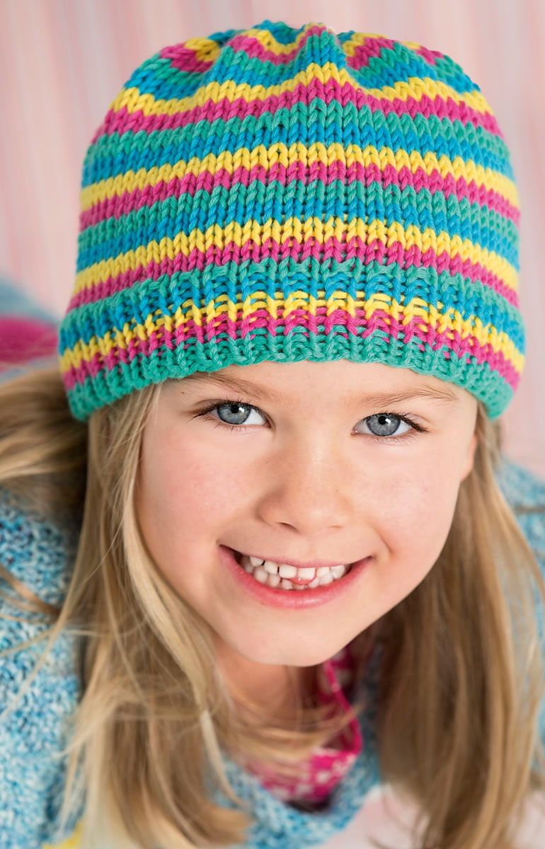 Lana Grossa Qualität „Organico” (100% Baumwolle, LL = 90 m/50 g), je ca. 50 g Smaragd (Fb 56), Pink (Fb 59), Gelb (Fb 54) und Azurblau (Fb 66), je 1 Spiel Stricknadeln Nr. 4 und 4,5.