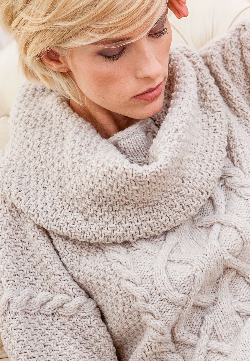 Diese gemütliche Kombi aus Poncho-Pulli und Loop-Schal verwandelt jedes Skandinavien-Tief in ein Mittelmeer-Hoch.
