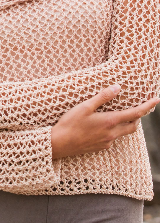 Lana Grossa Divino (75 % Baumwolle, 25 % Viskose, Lauflänge 110 m/50 g); 400 (450/500) g Lachsrosa (Fb 52); Stricknadeln Nr. 4,5.