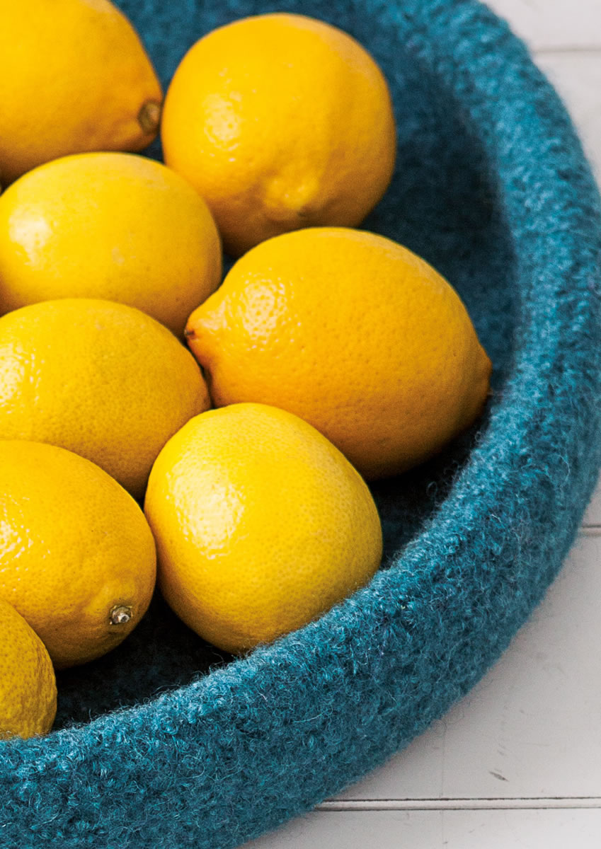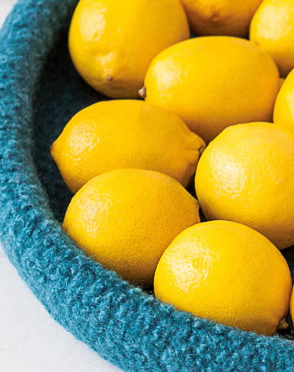 Sagt die eine Zitrone zur anderen: „Also wenn ich da nicht mit rein darf, bin ich echt sauer!“ (Größe: gewaschen ca. 42 cm Ø, ca. 5 cm hoch.)