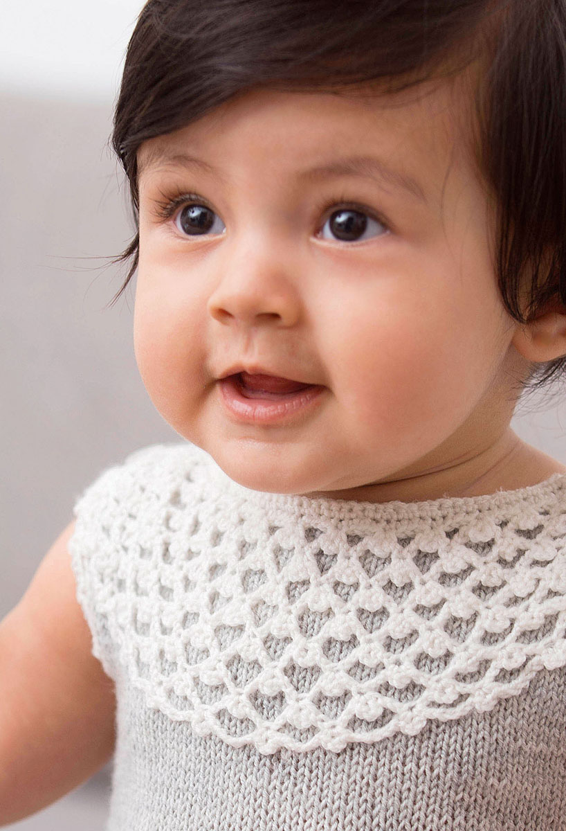 Diese Decke ist ein wahres Prachtstück. Der Mittelteil wird gestrickt, danach wird sie mit einer aufwendigen Spitzenbordüre umhäkelt. Wer davon nicht genug bekommen kann, macht beim süßen Overall mit Spitzenkragen gleich weiter