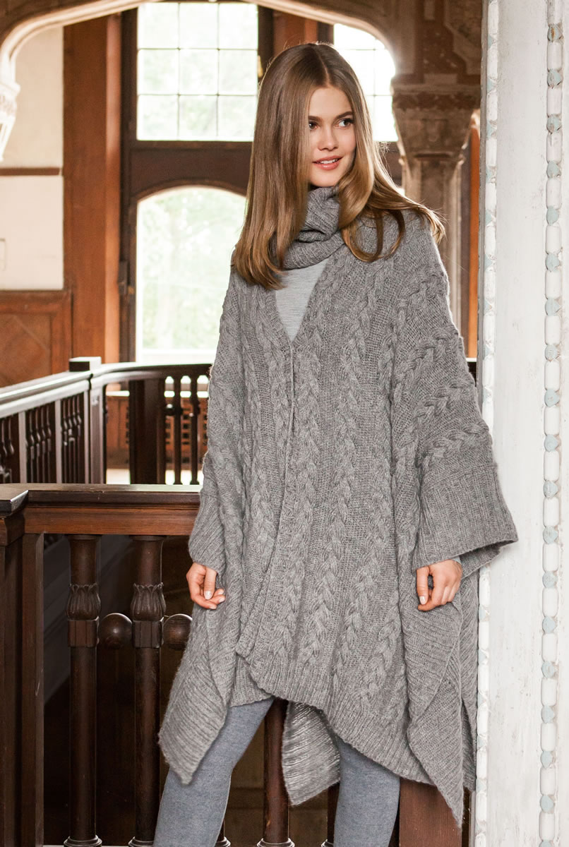 Mit diesem Leichtgewicht macht man nicht nur vor dem Kamin eine gute Figur. Das geschlitzte Plaid lässt sich auch als Poncho tragen. Prima dazu: der farblich passende Extra-Kragen.