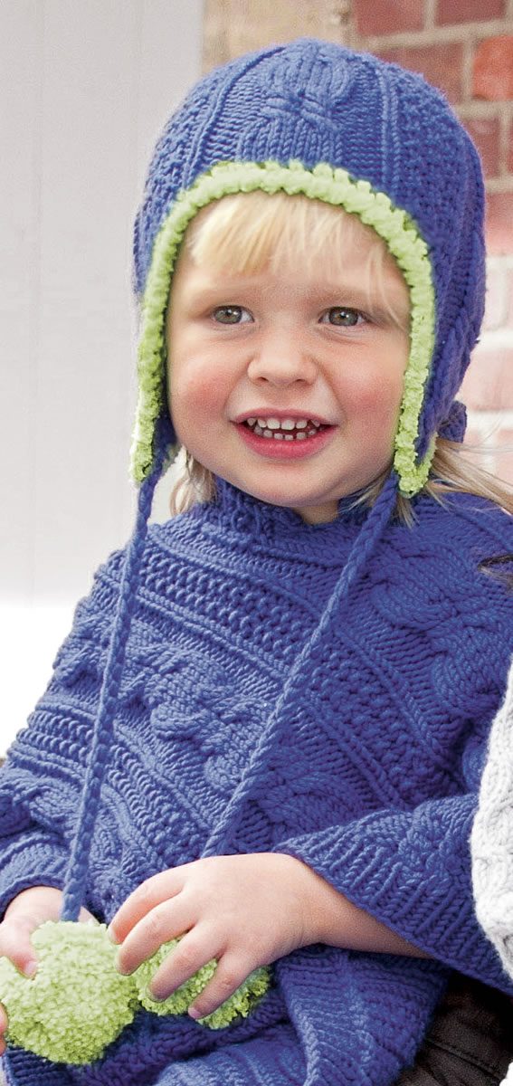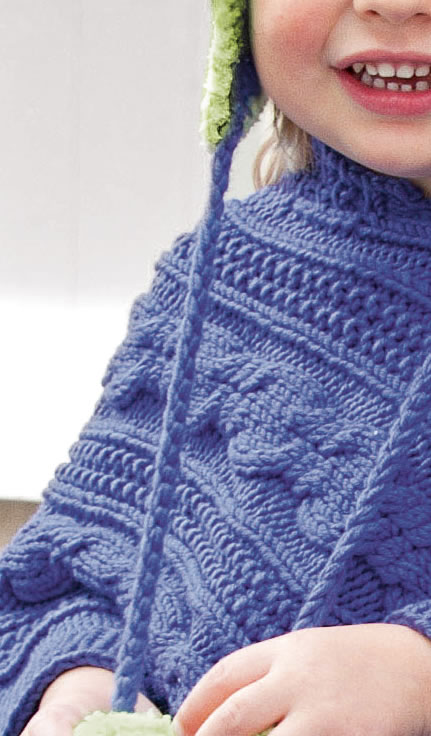 Lana Grossa Qualität Bingo, 100 % Schurwolle, Lauflänge 80 m/50 g; 350 (400) g Blauviolett (Fb 160) und Leggero II 100 % Microfaser, Lauflänge 150 m/50 g; 50 g Hellgrün (Fb 6); Stricknadeln Nr. 4,5, je eine kurze und eine lange Rundstricknadel Nr. 4,5, Stricknadelspiel Nr. 4,5, eine Häkelnadel Nr. 4,5; ein Pompon-Set.
