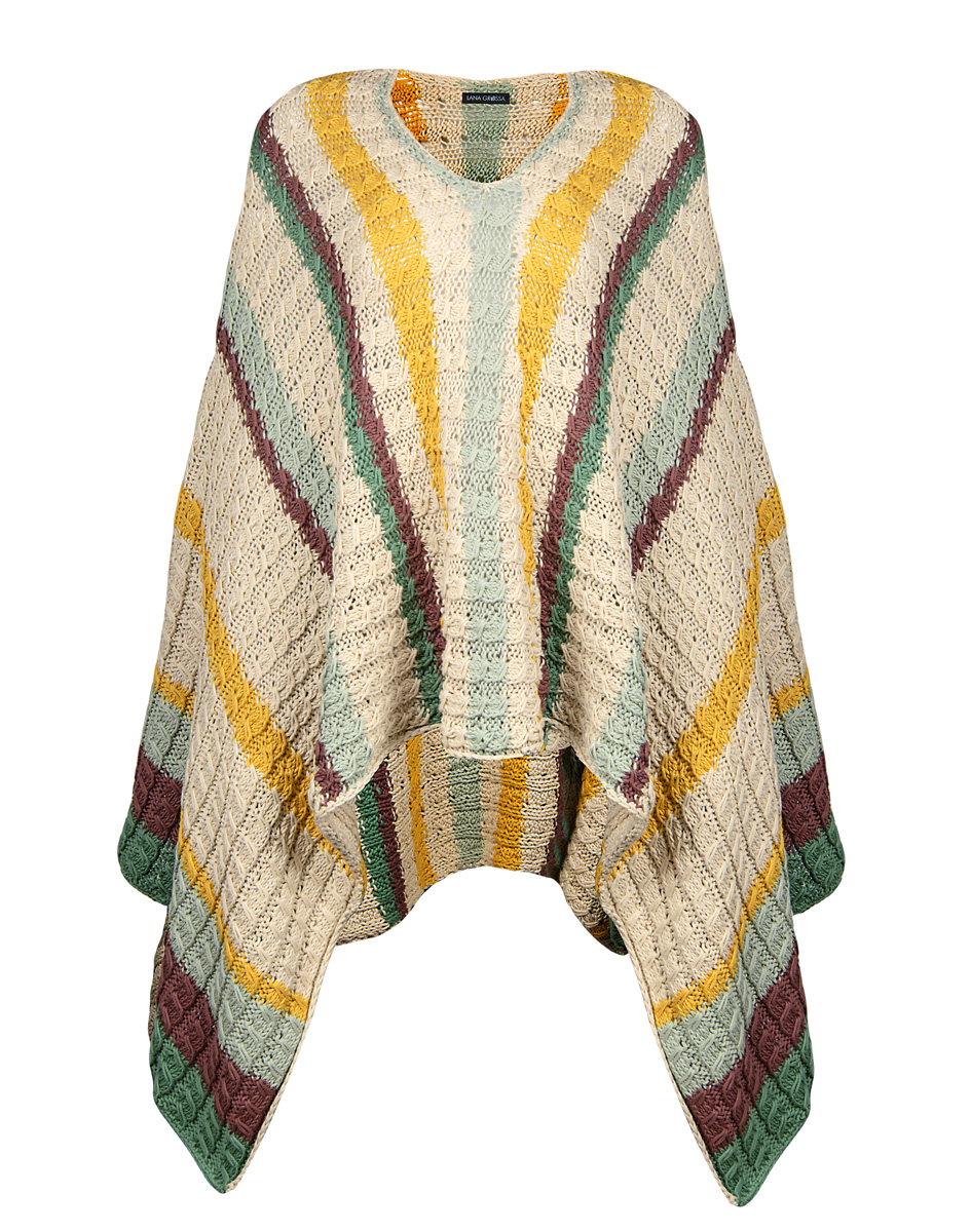 Von Beach-Dress bis Strandtuch: Der quergestrickte Poncho ist aus reiner Baumwolle – und darum auch am Wasser eine Wucht.