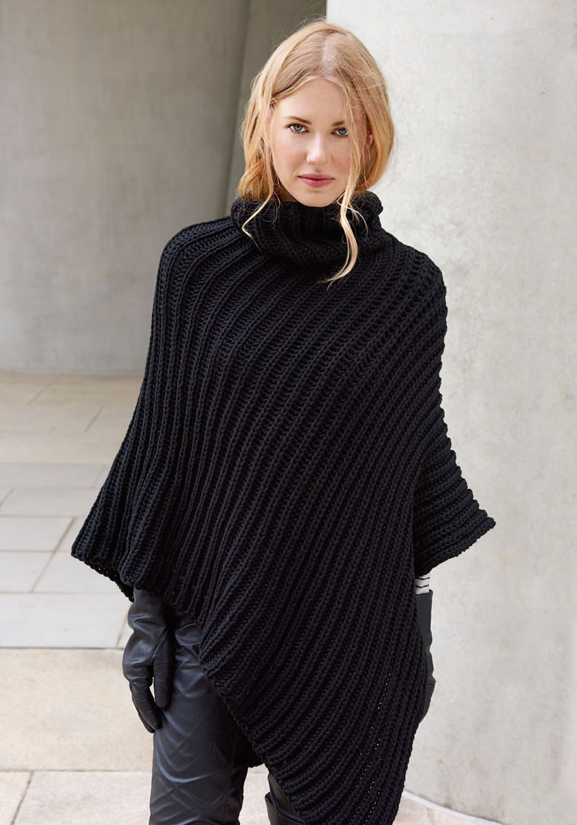 Lana Grossa Cashsilk, (15% Seide, 15% Kaschmir, 30% Viskose, 40% Polyamid, 75 m / 50 g) 650 g in Schwarz (Fb 15); Stricknadeln Nr. 10,0 mm.