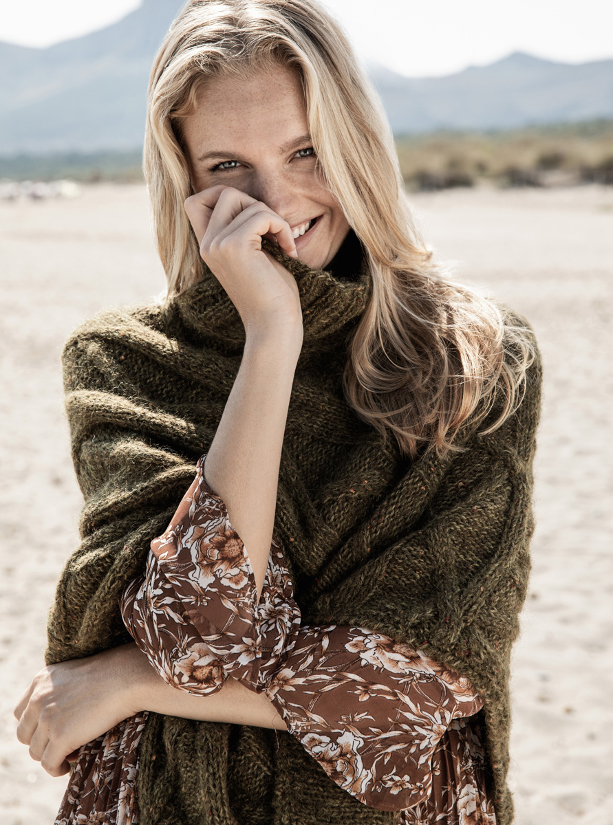 Veredelt Jeans und Boho-Kleid: das Strick-Cape mit Zöpfen
