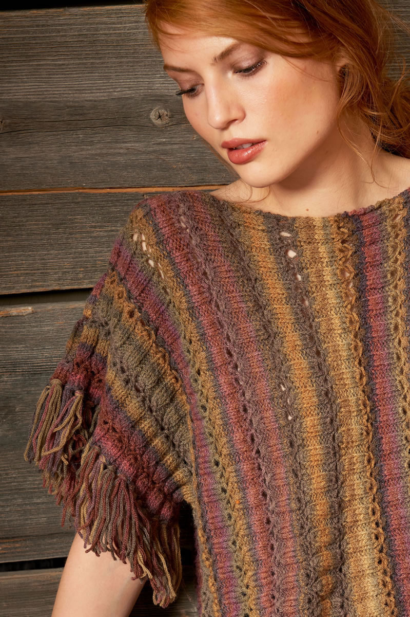 LASST FRANSEN TANZEN! Jetzt ist es die richtige Zeit, um sich dieses It-Piece zu stricken. Denn wer kann einem Poncho-Pulli mit so dekorativen Farben und Fransen schon widerstehen? Diese Details sind es, die unserem Look die gewünschte Portion Boho-Flair verpassen!