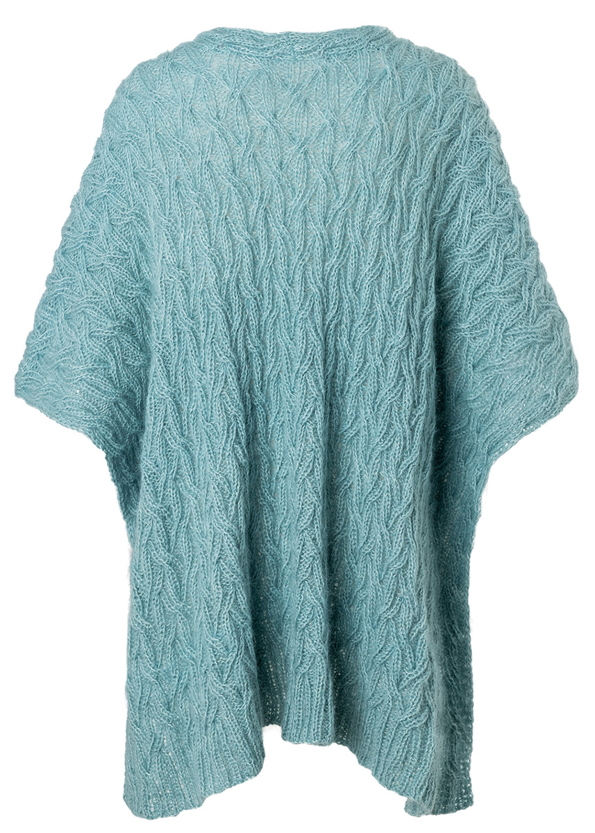 Mal Schal, mal Poncho-Tuch und ein Zopfmuster mit zwei Schokoladenseiten: Dieses Konzept machte das Muster 2021 zum TVStar (ARD-Buffet). Welche der Zopfmusterseiten außen liegt, entscheidest du vor der Fertigstellung. Auch bei den Garnen hast du die Wahl: Mischst du Ecopuno mit Silkhair, ist Mohair im Spiel. Die Kombination mit Setasuri überzeugt selbst auf der empfindlichsten Haut.