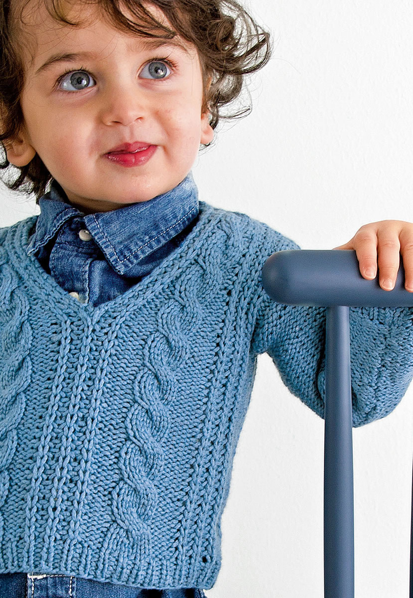 Wer sagt, dass Jungs keinen Spaß am „schick anziehen“ haben – nun, der täuscht sich ziemlich! Eine coole Strickjacke im Jeanslook und mit kleiner Tasche ist auch praktisch, denn da lässt sich auch mal was verstauen. Der grobmaschige Stricksweater mit Polokragen kommt zum Einsatz, wenn beim Spielen im Freien ein frischer Wind weht. Ja, und die beiden anderen stehen für „in den Kindergarten gehen“ oder „Freunde besuchen“ auf der Auswahl-Liste! Na also!