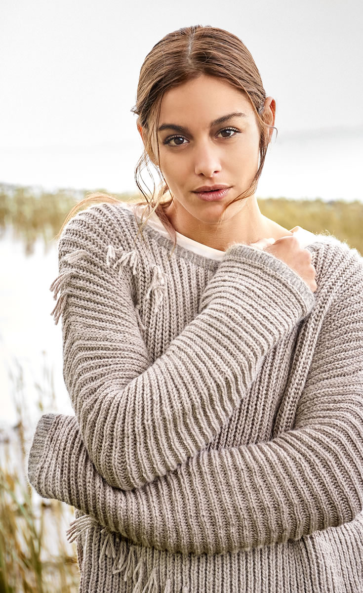 Individualität ist das Motto! Rippenstrick und eingeknüpfte Fransen verzieren unseren neuen Favoriten.