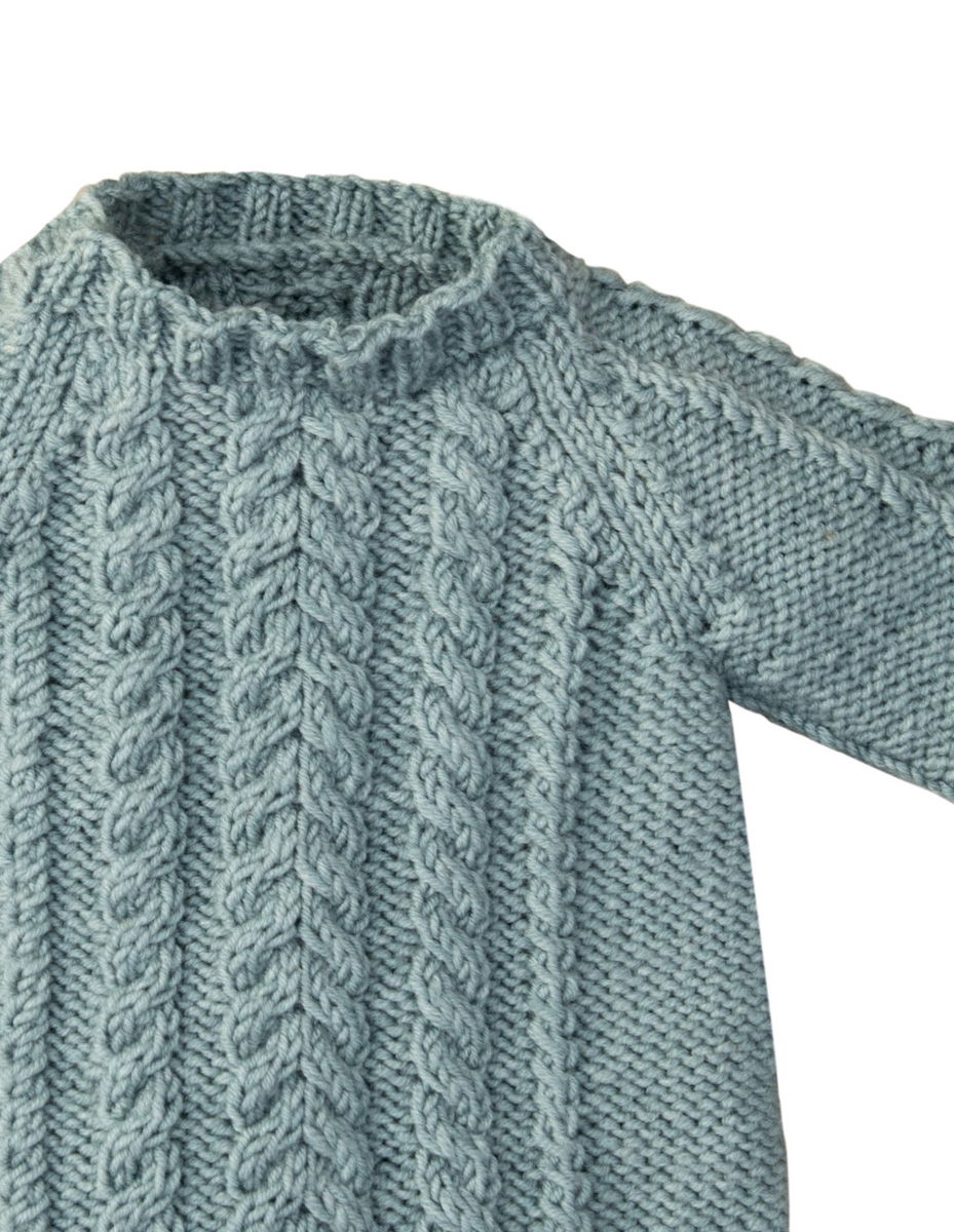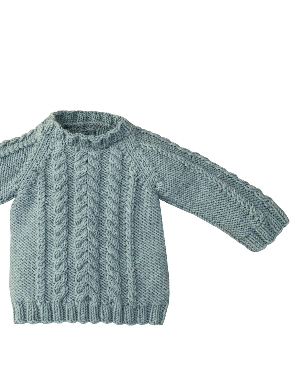Lana Grossa Cool Wool Big Mélange (100 % Schurwolle, Lauflänge 120 m/50 g) 100 (150/150/200/200) g Graugrün meliert (Fb 332); Stricknadeln Nr. 4, eine 40 cm lange Rundstricknadel Nr. 4.